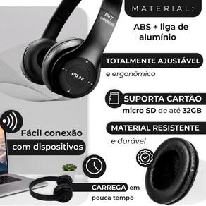 Fone De Ouvido Bluetooth sem Fio P47: Liberdade Sonora para o seu Dia a Dia