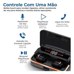 Este carregador também é um power bank, Carrega a bateria do seu celular através da entrada frontal de usb, de forma emergencial, não carrega totalmente a bateria do celular, com o carregador com carga completa, irá carregar cerca de 15% da capacidade total da bateria do celular. Possui microfone para atender chamadas telefônicas com apenas um toque. Som surround premium. Sensibilidade: 95+3db Conectividade: sem fio Versão de bluetooth: v5.0 + edr Tempo de espera: 8 a 10h Tempo para música: 4 a 5 aproximadamente Tempo de conversação: 4 a 5aproximadamente Tempo de carregamento: 1 a 2h Distância de transmissão: 10 m Bateria do case de carregamento: 2200 mah Bateria do fone: 50 mah Resposta de frequência: 50-8khz Compatível com: todos os aparelhos com bluetooth