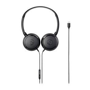 Fones de ouvido Audio-Technica ATH-S120C-BK USB-C, pretos - Os fones de ouvido com fio e conector USB-C melhoram a audição diária em smartphones, computadores e tablets - O microfone e os controles em linha permitem reproduzir/pausar música, alternar entre músicas, ajustar o volume e atender/encerrar chamadas - O design leve e compacto garante uma experiência auditiva confortável mesmo durante uso prolongado - As caixas dobráveis para facilitar o armazenamento - Compatível com iOS e Dispositivos Android