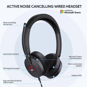 - Chamadas cristalinas com microfone com cancelamento de ruído: equipado com tecnologia ENC avançada, o fone de ouvido USB ANC filtra com eficácia o ruído de fundo, como cães latindo, crianças chorando, sons de TV, digitação no teclado, ruído doméstico e ruído do trânsito. Garante que somente sua voz seja ouvida durante as chamadas, tornando-a ideal para trabalho remoto, call centers, Zoom, equipes e atendimento ao cliente.