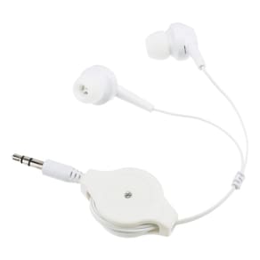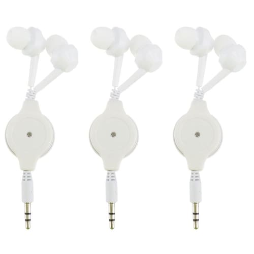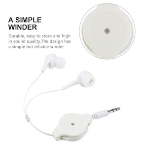 Fones de ouvido retráteis com fio de 3,5 mm, material ABS e PVC, design retrátil para fácil armazenamento, compatível com a maioria dos dispositivos com conector de 3,5 mm.Plug