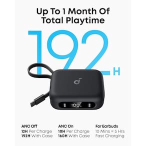 - Vida útil da bateria ultralonga: ouça por até 12 horas com uma única carga; o estojo a estende para 192 horas. Um reabastecimento rápido de 10 minutos oferece mais 5 horas de música.