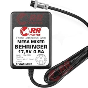 Fonte compativel com mixer mesa de som behringer eurorack Ac 17,5v 500ma bivolt com chave de seleção de voltagem 110v/220v Para os modelos; Eurorack mx1602 Eurorack mx1604a Eurorack mx802a Pro mixer dx100 Pro mixer dx500 Foto meramente ilustrativa Rrfontes