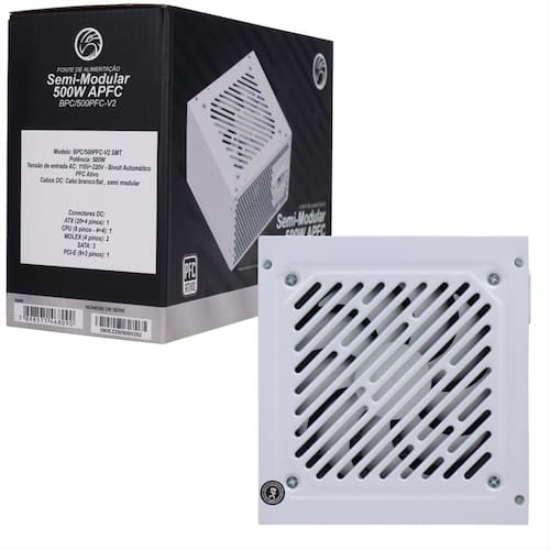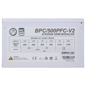 Produto: Fonte 500W Brazil PC BPC/500PFC-V2 - ATX - Semimodular - PFC Ativo - Bivolt Automático - Branco