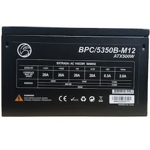 Produto: Fonte 500W Brazil PC BPC/5350B-M12 - ATX - 12X12CM - Preto - Bivolt