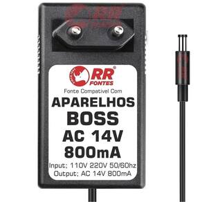 Fonte Compativel Com Pedal, Baterias Eletronicas e Interface sintetizador Roland Boss AC 14V 800mA Bivolt com chave de seleção de voltagem 110v/220v Atende os seguintes modelos; AF-70 DR-770 DR-880 SP-505 VF-1 GR-33 GR-20 GS-10 JS-5 GT-3 GT-6 GT-6B GT-8 GX-700 ME-8 ME-8B ----FOTO MERAMENTE ILUSTRATIVA---- RRFONTES BRC-120 Marca: Não Informado