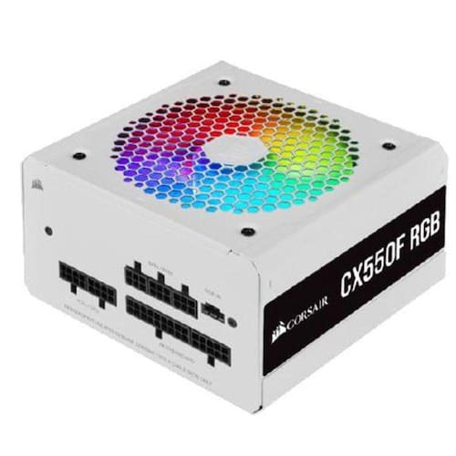 As fontes de alimentação full modular s da série corsair cx-550f rgb fornecem energia confiável e eficiente com certificação 80 plus bronze para o seu sistema, juntamente com iluminação vibrante personalizável de um ventilador rgb de 120 mm ostentando oito leds rgb e uma estética limpa.