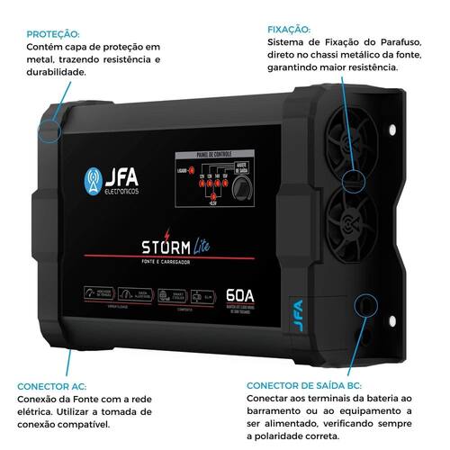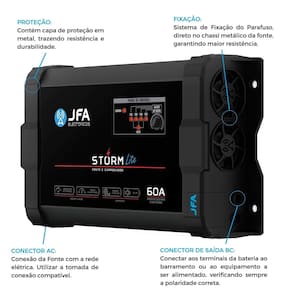 Fonte Automotiva Carregador de Bateria Storm Lite 60A JFA Bivolt Carro Som Automotivo Fonte Automotiva Carregador de Bateria Storm Lite 60A JFA Bivolt Carro Som Automotivo - 7898554808011