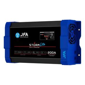 Fonte Carregador Jfa 200a Lite Storm Slim BivoltA Fonte e Carregador Storm Lite JFA é a melhor opção para alimentação do seu sistema de som, utilizando ou não baterias, com ótimo custo benefício. Seu diferencial é possuir a voltagem de até 15.2V, com a tensão para equalização dos vasos internos da bateria, única do mercado.Especificações Técnicas:• Consumo com Máxima Carga: 3.000W• Mantém Até 10.000W RMS de Som• Bivolt Automático: 110/220Vac• Entrada de Rede Elétrica Bivolt: 90 a 140Vac/ 170 a 240Vac• Tensão de Saída Selecionável: 12,6V / 13,0V / 13,4V / 13,8V / 14,0V / 14,4V• Sistema de Carga Inteligente: 13,8 / 14,4 cíclico• Corrente de Saída: 200 Amperes• Precisão do amperímetro: 96%• Display para Monitorar Tensão ou Corrente• Sistema de Carga Lenta (3 fases): Elevação /Absorção/ Equalização• LEDs Indicadores de Nível da Bateria e Carga Completa• Proteções: Excesso de Carga, Curto na Saída e Temperatura• Smart Cooler - Sistema de Ventilação Inteligente• Controle: Dinâmico por PWM• Topologia: Half Bridge• Peso: 2,650 Kg• Medidas Aproximadas (LxAxP): 31,7x17,2x9,5cmConteúdo da Embalagem:• 01 Fonte Automotiva JFA 200a Storm Lite• Manual e Certificado de GarantiaImportante:• Garantia de 273 Dias.• Valor Unitário.