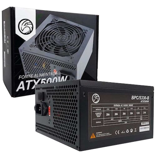 A Fonte Brazil PC 500W BPC-5330-B oferece alimentação estável e confiável para computadores de uso doméstico e profissional, entregando uma potência nominal de 500W e operação bivolt automática para maior praticidade. Equipada com um cooler de 120 mm, mantém o sistema em temperatura ideal e com excelente circulação de ar. Seu conjunto de conectores atende desde configurações básicas até setups com placa de vídeo intermediária, garantindo compatibilidade ampliada e desempenho seguro.