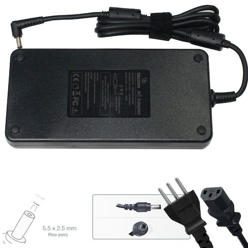 Informações Técnicas: Tensão (Voltagem): 19.5V Corrente (Amperagem): 11.8A Potência: 230W Dimensões do pino: 5.5mm x 2.5mm Comprimento do cabo de energia: 1,50m Condição: Novo Garantia: 06 Meses Marca: Teccon