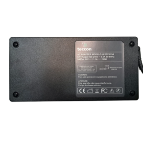Informações Técnicas: Tensão (Voltagem): 20V Corrente (Amperagem): 11.5A Potência: 230W Dimensões do pino: Retangular estilo USB Comprimento do cabo de energia: 1,50m Condição: Novo Garantia: 06 Meses Marca: Teccon