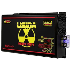 Especificações Técnicas • Tensão de Entrada: Bivolt Automático • AC 127Vca: 100 @ 140Vca • AC 220Vca: 170 @ 250Vca • Consumo 127Vca: 32A (máximo) • Consumo 220Vca: 22A (máximo) • Tensão de Saída: 12,5V @ 14,4Vcc (+-1%) • Corrente de Saída: 220A @ 12,5Vcc (+-10%) • Potência de Saída: 2750 Watts (máxima) • Rendimento: 85% • Potência de Entrada: 3450 Watts (máxima) • Cabo de Entrada: 3x2,5mm² - 2P+T • Proteção de Entrada: Disjuntor 32A • Cabo de Saída: 50mm² • Extensão Recomendada: 4mm² (máx 30 metros) • Gerador Recomendado: 4 Kva ou maior • Dimensões Aproximadas (CxLxA): 376mmx210mmx86mm • Peso: 4Kg