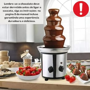 Características Principais: - Tensão: 127V / 60Hz - Potência: 170W - Capacidade: 1200ml - Material: A cascata é feita de aço inoxidável de alta qualidade, garantindo durabilidade e elegância. - Controle de Temperatura: Ajuste a temperatura conforme sua preferência para manter o chocolate sempre na consistência perfeita. - Modo de Usar: Simples e prático Basta colocar o chocolate derretido na base e ligar o motor. O chocolate é então impulsionado através da torre, criando uma irresistível cascata de chocolate.