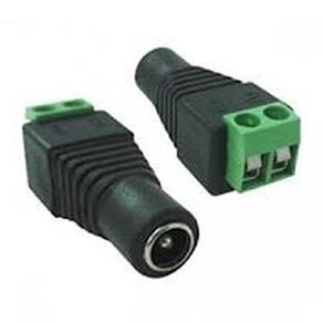 conector p4 para alimentação em sistemas de segurança cftv material de alta qualidade evite uso de adaptadores ou cortar a fonte da camera próprio para alimentação de câmeras de cftv medida: 5mm externo negativo 2mm interno positivo 2 bornes com parafuso para conexão de fios