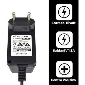 Descrição: Fonte Compatível Carregador 9v Amvox Aca 550 strondo II - Modelo: Aca 550 strondo II, ACA 292, entre OUTROS - Input: Bivolt 110 - 240V 50-60HZ 600mA - Output: 9V - 1.5A - Plug: P4 Padrão 1,7 mm x 4,0 mm - Comprimento do Rabicho: 1,20 Metros - Medidas da fonte: comprimento 8,5 cm X 4 cm de largura X 9 cm de Altura. - Aparelhos Compatíveis: ACA 292,TRC 511, ACA 400 Stronda, ACA 188.