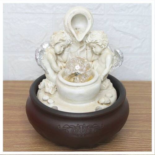 Fonte De Água Decorativa Cascata Anjos Luz De Led Bivolt -