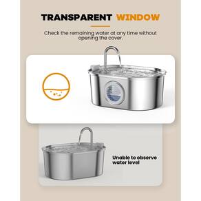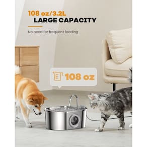 A fonte para gatos tem uma janela de nível de água, para que você possa ver o nível da água sem abrir a fonte de água do animal de estimação e não precisa mais ter medo de problemas. - ?Design exclusivo: janela de nível de água e aço inoxidável? Uma janela redonda transparente é projetada na fonte de água de aço inoxidável para gatos, você pode ver o nível de água da fonte de água do gato sem abrir a fonte para gatos. A fonte para gatos é feita de aço inoxidável 304 de alta qualidade, resistente à corrosão. - Formato da torneira – atrai gatos?Os designers da SOOFPET observaram que os gatos gostam de beber água debaixo da torneira, então eles projetaram esta fonte de água para animais de estimação em forma de torneira. A água de nascente viva que flui sob a torneira atrai melhor os gatos. Deixe seu animal de estimação adorar beber água. - 3,2 L – Viagem sem esforço e sem restrições. Use a fonte para gatos para que você não precise reabastecer água para o seu gato com frequência. Esta fonte para gatos tem uma grande capacidade de 3000 ml para atender às necessidades de água do seu gato por 8 dias. Isso permitirá que você viaje com tranquilidade. - ?Quatro camadas de filtragem – mais saudável? A fonte de água para gatos tem um sistema de filtragem de quatro camadas. Pode filtrar impurezas, remover odores, suavizar a água e melhorar o sabor. Isso reduz o risco de problemas gastrointestinais e urinários em gatos. (É melhor se você puder trocar o filtro de carbono a cada 2-4 semanas) - Bomba de água silenciosa e pedestal separado conveniente: a bomba de água recentemente atualizada é super silenciosa (= 30dB). Traga a você e seu gato um sono confortável. Os designers da SOOFPET entendem a importância de uma base separada para o usuário. A base independente é conveniente para você desmontar o dispensador de água para animais de estimação mais rapidamente, então a limpeza se torna fácil. - ?Serviço – Resolva os problemas que você encontrar? Fornecemos um período de proteção de 2 anos para a bomba de água. Se a bomba de água estiver quebrada, para uma substituição. Você pode comprar outros acessórios em nossa loja. (Observação: para remover o toner, você precisa deixar o filtro de molho em água por 3-5 minutos ao usá-lo pela primeira vez.)