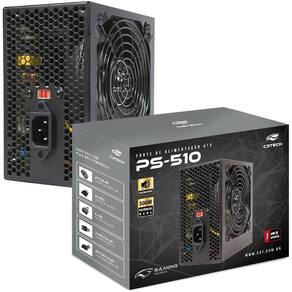 Fonte atx 500w ps-510bk c3tech gaming a fonte atx 500w ps-510bk da c3tech é uma solução de alimentação robusta para o seu sistema. Com potência real de 500w, design bivolt manual e um prático on/off, esta fonte oferece a versatilidade que você precisa. Os cabos e conectores foram cuidadosamente projetados, incluindo um cabo flat preto que facilita a organização. Com um conector atx 20+4p, conector atx aux 12v 4+4p, conectores sata, conectores ide, e conectores pci express 6+2p, você terá a flexibilidade necessária para alimentar seus componentes. Além disso, as características elétricas, como a tensão de operação ac 115/230v e a corrente de saída +12v de 31a, garantem um desempenho confiável. Escolha a fonte atx 500w ps-510bk para proporcionar energia estável e eficiente ao seu sistema. Potência e confiabilidade para seu setup gamer 500w de potência real: a fonte atx c3tech ps-510bk oferece 500w de potência real, garantindo energia suficiente para suportar todos os componentes do seu sistema, incluindo placas de vídeo de alta performance, processadores potentes e dispositivos periféricos. Certificação 80 plus: com eficiência energética superior a 80%, esta fonte minimiza o desperdício de energia, reduz o calor gerado e economiza na conta de luz, proporcionando um funcionamento mais frio e silencioso. Design robusto e seguro Construção resistente: fabricada com materiais de alta qualidade, a ps-510bk possui um design robusto, que assegura durabilidade e resistência, mesmo em setups que operam por longos períodos de tempo. Proteções integradas: para garantir a segurança do seu hardware, a fonte conta com múltiplas proteções, incluindo contra surtos de tensão, sobrecarga, curto-circuito e sobretemperatura, oferecendo uma operação estável e confiável. Conectividade e compatibilidade Cabos longos e flexíveis: os cabos fornecidos são de comprimento ideal e possuem revestimento flexível, facilitando a organização dentro do gabinete e contribuindo para um fluxo de ar mais eficiente, além de um visual mais limpo. Compatibilidade ampla: compatível com uma ampla gama de gabinetes atx e componentes, a fonte c3tech ps-510bk é ideal para montagens e upgrades em pcs gamers, workstations e sistemas domésticos de alta performance. Operação silenciosa e eficiente Ventoinha silenciosa: a ps-510bk é equipada com uma ventoinha de 120mm que opera de forma silenciosa, mantendo a fonte refrigerada e garantindo uma operação estável mesmo sob carga máxima. Eficiência em alto desempenho: projetada para manter um alto desempenho sem comprometer a eficiência, essa fonte proporciona um fornecimento de energia contínuo e estável, essencial para a segurança e longevidade dos componentes do seu pc. Estilo e funcionalidade Acabamento preto fosco: o acabamento preto fosco da fonte adiciona um toque de estilo ao seu setup, combinando perfeitamente com gabinetes modernos e oferecendo uma estética elegante e discreta. A fonte atx 500w ps-510bk c3tech gaming é a escolha ideal para gamers e entusiastas que buscam uma fonte de alimentação confiável, eficiente e com proteção robusta, capaz de sustentar sistemas de alta performance com segurança e estilo. Especificações gerais Potência real 500w Bivolt manual Possui on/off Cabos e conectores 1 x conector atx 20+4p - 55cm 1 x conector atx aux 12v 4+4p - 65cm 4 x conector sata - 35cm 4 x conector ide - 15cm a partir de sata 2 x conector pci express 6+2p - 55cm Cabo flat preto que facilita a organização Características elétricas Tensão de operação: ac 115/230v Frequência: 50hz Corrente de saída +5vsb: 2a Corrente de saída +3,3v: 8a Corrente de saída +5v: 12a Corrente de saída +12v: 31a Corrente de saída -12v: 0.3a altura da embalagem: 17.5 cm Largura embalagem: 23 cm Comprimento embalagem: 10 cm Peso embalagem: 1387 g Part number/sku: ps-510bk