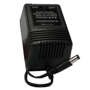 Fonte de Alimentação Bivolt 9v 0,5a MA-9500 Microdigital com chave de seleção de voltagem. A fonte vem selecionada pela fábrica para operar em 220 volts. Indicada para diversos aparelhos compatíveis com as especificações.