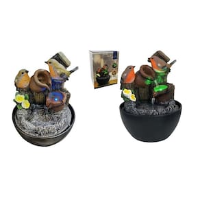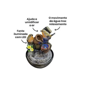 Deixe sua casa muito mais linda com esta fonte de água bivolt que já inclui a bomba de água. Modelo com dois pássaros e jarro.