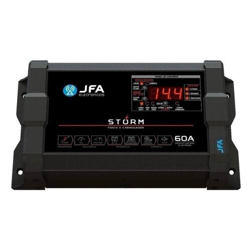 Fonte E Carregador De Bateria Jfa 60a Storm Plus Bivolt A Fonte e Carregador Storm 60A é mais que uma fonte. Ela é a revolução de tudo o que a JFA já produziu. Equipada com a mais alta tecnologia, compacta e com funções exclusivas, a Fonte Storm é a melhor escolha para carregar, alimentar e também monitorar o funcionamento de baterias automotivas. Ela reúne as principais características das linhas SCI e Redline e inaugura um novo conceito de Fonte Inteligente.
