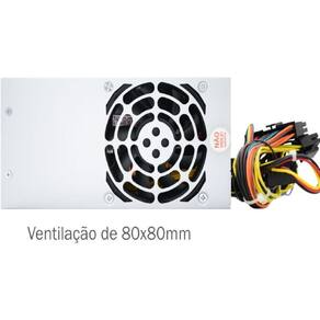 Fonte ez8828c eztfx 300w 80 plus bronze c/cabo - Fonte de alimentação ez tfx-300 80 plus bronze Certificação 80 plus bronze 5 tipos de saídas +12v, -12v, +5v, +3.3v, +5vsb Baixo ruído Alta confiabilidade Função remota liga/desliga Possui pfc ativo Fonte padrão tfx Fonte de alimentação ez tfx-300 Especificações técnicas Eficiência: 85.23% da carga máxima Voltagem: 110220vac full range Frequência: 60hz Ventilação: interna - 80mm cooler Comprimento dos cabos 24p e p4 : p4: 300mm 24p: 300mm Dimensões axlxp : 65x85x175mm Acompanha cabo de energia padrão inmetro - comprimento: 1300mm Especificações da embalagem Embalagem individual com 01 uma unidade Peso líquido: 0,920kg Votar a página inicial Características gerais do produto: Material: metal : 90