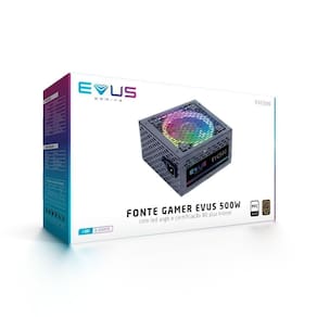 Fonte Gamer Evus Evg500 Argb 500w DESCRIÇÃO TÉCNICA A Fonte Gamer Evus EVG500 ARGB entrega eficiência energética e controle total de iluminação! Com o Selo 80 PLUS BRONZE, sua eficiência energética se mantém acima de 82%, o que significa menor dissipação de calor dentro do gabinete e economia de energia ao alimentar todo o seu hardware. Além disso, a fonte EVG500 possui PFC Ativo para conversão de chaveamento duplo (Bivolt), fornecendo 500W reais, e também conta com proteções tipo OVP OPP UVP SCP OCP. Com 6 conectores Sata e 2 Molex, a Fonte Gamer Evus EVG500 ARGB é muito versátil e discreta, pois todos os cabos são revestidos em nylon na cor Preta. Tenha o melhor da iluminação em LED, com múltiplos efeitos de iluminação e LED?s endereçáveis com a tecnologia ARGB*, através do cabo com conector 5v. Sincronize os efeitos dos LED?s com os demais componentes do seu gabinete, criando um estilo único e homogêneo em seu setup gamer. * Verifique a compatibilidade de sua placa-mãe ou controladora com conectores 5v e com a tecnologia ARGB. *Imagem meramente ilustrativa. ESPECIFICAÇÃO TÉCNICA Tamanho da fonte: 160*150*85 mm Eficiência:> 82% Tamanho dos cabos: 55 cm Tensão de entrada: 110-240 VAC PFC: Conversão de Chaveamento Duplo Ambiente operacional: 0C min. a +40C max. Aprovações de segurança: EMI CE, FCC, GOST, CB, EAC, CCP. Dissipação de calor: Design de ventilação em colméia Cabo de Energia: Incluso PROTEÇÕES Proteção contra sobrecorrente (OCP) Proteção contra sobretensão (OVP) Proteção contra subtensão (UVP) Proteção contra sobrecarga de energia (OPP) Proteção contra curto-circuito (SCP) ESPECIFICAÇÕES DO FAN Tamanho: 120*120*25mm Tensão nominal: DC12V Nível de ruído: Baixo ruído ondulação Iluminação: LED?s ARGB Rotação do FAN: Sentido anti-horário Ean: 7898597133095
