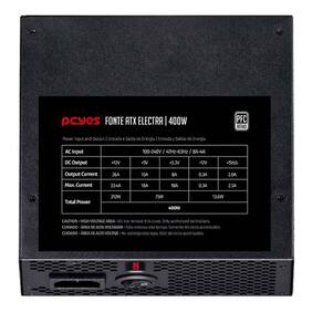 Detalhes Especificações Potencia: 400W Tensão de Entrada: Full Range 100-240V Fan: 12cm preto com controle térmico Pfc Ativo Filtro EMI: 2 grade on PCBoard Dissipador de calor
