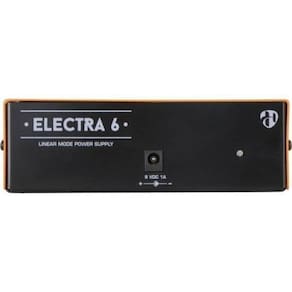 Fonte Linear Hayonik para 6 Pedais de Efeito ELECTRA 6 9Vdc 1000mA A fonte Electra 6 opera de forma automática qualquer tensão da rede elétrica entre 100 e 240Vac. Ela possui capacidade de suprir energia para até 6 pedais.