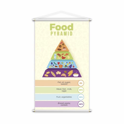 Seja para um ambiente educativo ou para um espaço mais casual, o banner Food Pyramid - Pirâmide Alimentar em Inglês agrega um valor estético e educativo, tornando-se uma peça central que favorece o aprendizado e promove a conscientização sobre a importância de uma alimentação balanceada.