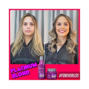 O Kit Platinum Blond Manutenção Desamarelador Forever Liss irá tratar os seus cabelos, eliminando os efeitos causados pela química e ações de fatores como exposição ao sol, piscina, secador e chapinha. Tudo isso graças a seus ingredientes naturais que nutrem os fios e selam as cutículas capilares.