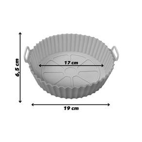 Especificações: - Cor: Cinza - Tamanho: 6,5cm x 17cm x 19cm - Material: Silicone livre de BPA - Suporta temperaturas de: -40 á 230C - Possui alças para Manuseio - Antiaderente - Ampla aplicação: Fritadeira de ar AirFry , Micro-ondas, Forno, Vapor, Fogão entre outros. - Produto Reutilizável e Fácil de Limpar