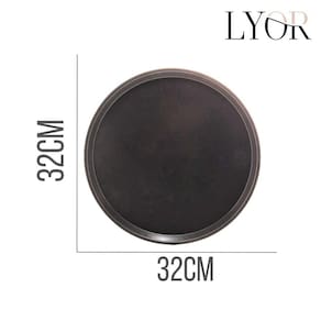 A assadeira redonda em aço carbono com revestimento antiaderente e estampa granilite preta da Lyor, com 32x32cm, é ideal para o preparo de pizzas caseiras. O material em aço carbono favorece a uniforme de calor, contribuindo para o cozimento homogêneo da massa e a obtenção de uma base crocante. Seu formato circular e tamanho são adequados para pizzas de tamanho médio. A assadeira pode ser utilizada em fornos convencionais, seguindo as instruções de uso do fabricante.