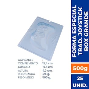 Qtde. Master: 25 Cavidades: 1 Comprimento: 154 mm x Altura: 40 mm x Largura: 105 mm Peso casca: 125 g Peso médio: 500 g Modelo: Especial (3 Partes)