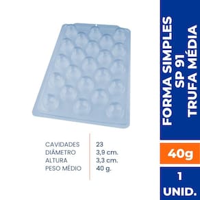Forma Simples, ideal para produção de chocolates com muita praticidade. As Formas foram desenvolvidas para agilizar e facilitar o trabalho na hora de fazer bombons, trufas, ovos e outros docinhos, fácil de desenformar e ficam com um acabamento perfeito.