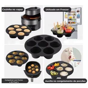 Utensílio de cozinha projetado para moldar, cozinhar, assar e congelar alimentos, como bolinhos, cupcakes, muffins, sorvetes, porções de comidas para bebês, e tudo que você desejar Sua maior vantagem é a multifuncionalidade, suportando temperaturas de -40c até 230c, utilizada em fornos tradicionais, air fryers, congeladores, freezers e geladeiras. Indispensável na sua cozinha e na preparação do seu prato favorito, feita de silicone resistente e super maleável, o que facilita desenforma-lo e higieniza-lo após o uso.
