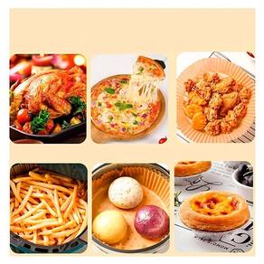 - Forre a fritadeira com papel descartável para manter a fritadeira limpa. - Não afeta o sabor da comida, leve e prático. - Use papel de grau alimentício, impermeável, à prova de óleo, antiaderente, 100% saudável, resistente ao calor e pode suportar temperaturas de até 230 graus. - Oferece uma variedade de opções para suas necessidades diárias do cozimento. - Jogue fora o papel após o uso. - Não precisa mais limpar a panela de óleo. - Se encaixa muito bem nos equipamentos de 3 a 5 litros.