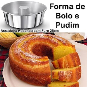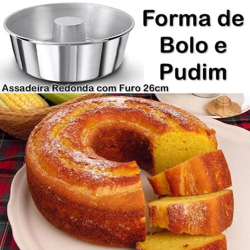 Forma de Bolo e Pudim - Assadeira Redonda com Furo - 26cm - Aluminio Polido - Tubo Forte Extra - Valesa - PANAMI