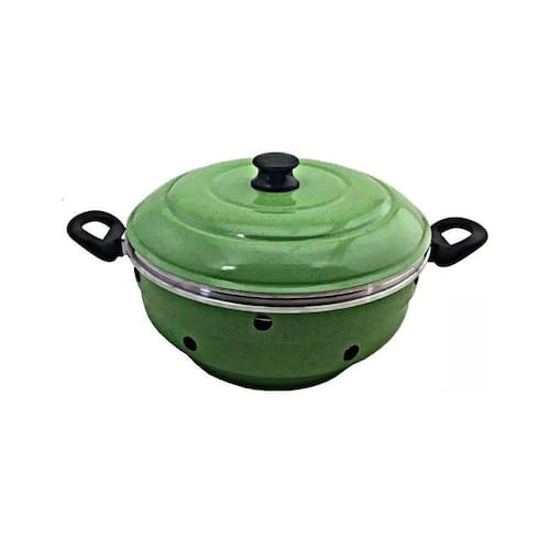 Forma multi uso 5 em 1, em alumínio colorido na cor verde. Forma para Bolo, Pudim, Pizza e Pão de Queijo, Grelha para Churrasco, tudo à banho maria. Bastando colocar água no fundo, Isso representa saúda, qual seja, menos gordura e mais sabor. Praticidade a toda prova, com múltiplas funções (assar pizzas, bolos, pudim e fazer grelhados ou churrasco) se torna indispensável na sua cozinha. Economize tempo, economize gás. Ideal para uma alimentação saudável e sabor apurado.