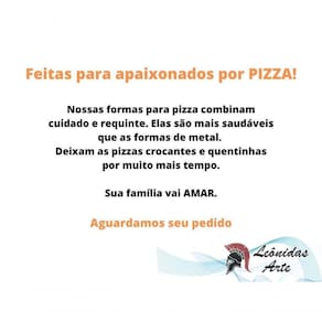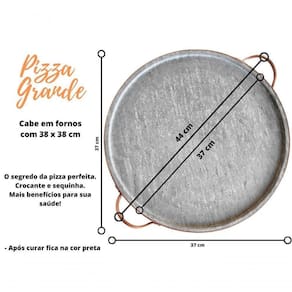 FORMAS DE PIZZA DE PEDRA SABÃOQue tal reunir a família e amigos para compartilhar bons momentos acompanhados de deliciosas pizzas!?Estudos científicos mostram que cozinhar em Formas assadeiras de Pedra Sabão é benéfico para a saúde, ao contrário das assadeiras de metal que estão associadas aos maus de Parkinson e Alzheimer.As formas de Pedra Sabão vão deixar suas pizzas ainda mais gostosas. Elas propagam o calor de forma uniforme e eficiente, assam a pizza por igual e as mantem quente por mais tempo, mesmo após retirar do forno.Duráveis e decorativas as bandejas de Pedra Sabão levam charme e requinte para sua cozinha e mesa.Leve o sabor da comida mineira para sua casa!PARA USO EM FORNOS! Não deve ser usada na chama direta.Medidas:- Diâmetro externo: 37 cm- Diâmetro interno: 35 cm- Alça a alça: 44 cm- Peso: 4 kgMatéria prima- Pedra Sabão e Cobre
