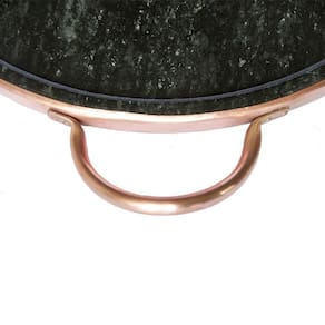 A Forma de Pedra Sabão vai deixar suas pizzas ainda mais gostosas. Elas propagam o calor de forma uniforme e eficiente, assam a pizza por igual e as mantem quente por mais tempo, mesmo após retirar do áveis e decorativas as formas de Pedra Sabão levam charme e requinte para sua cozinha e mesa. Leve o sabor da comida mineira para sua casa!Para uso somente em fornos. Não deve ser usada na chama direta.Medidas:- Diâmetro externo: 37 cm- Diâmetro interno: 35 cm- Alça a alça: 44 cm- Peso: 4 kgMatéria prima- Pedra Sabão e Cobre