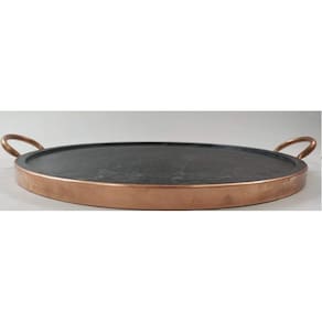 O sabor de minas até você....Retém o calor por longo tempo deixando sua pizza mais crocante. Medidas 40 cm de diâmetro (interno) 42 cm externo e 48 cm com alças Peso: 8 kg (aproximadamente)Observação: * A forma vai pronta para ser usada. Todo material em pedra sabão-após curado muda de cor ficando com uma tonalidade mais escura. * Fotos ilustrativas Por ser um produto artesanal as peças podem variar e as medidas e pesos são aproximados, porém a qualidade continua a mesma.* pode ser utilizada em: forno convencional, forno à lenha e forno elétrico.
