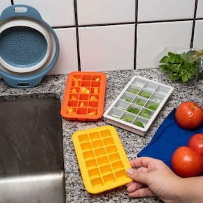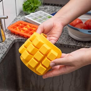 ":: Essa é a forma de gelo de 18 cubos da OIKOS, ou para os íntimos, forma-do-que-você-quiser! :: Muito versátil: por ser de silicone livre de BPA, consegue se adaptar tanto no freezer quanto no forno, aumentando seu leque de receitas fáceis, como chocolates, gelatinas, balas de goma, temperos congelados e mais. :: Bem fácil de desenformar: seu material de silicone maleável ajuda muito na hora de desenformar - recomendamos untar nos três primeiros usos e nunca mais! :: Material higiênico: o silicone não retém cheiros, manchas e nem prolifera bactérias. :: Fácil de lavar: mistura de água morna e detergente neutro, utilizar laco macio da esponja - e também pode ir na lava-louças.
