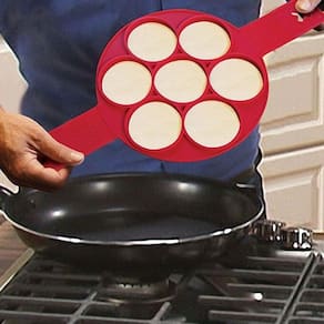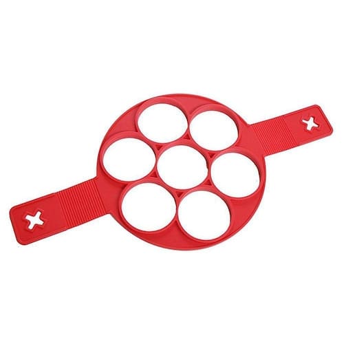 A forma de Silicone Antiaderente para Panqueca, Ovos e Omelete é o utensílio perfeito para aqueles que amam um bom café da manhã com praticidade. Feita de silicone antiaderente ela é uma facilitadora de vida, já que agora você poderá fazer ovos, panquecas, tapioca... várias ao mesmo tempo. Basta colocar a massa ou os ovos no espaço circular do produto e segurar nas abas da forma para virar todas de uma só vez. Ideal para agilizar a refeição, ela tem capacidade de preparo de 7 por vez.