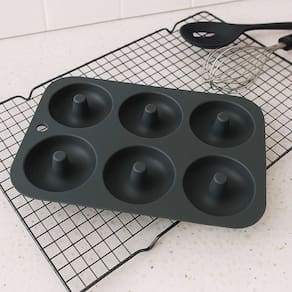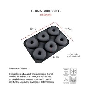 A forma de silicone e pratica, flexivel e ideal para preparar diferentes receitas de forma rapida e uniforme. Produzida em silicone, resistente ao calor, duravel e de facil higienizacao. Suporta temperaturas de aproximadamente -40 °C a 230 °C, podendo ser usada no forno, freezer e air fryer, trazendo praticidade no dia a dia e resultados profissionais. Com 6 cavidades, e perfeita para assar e servir suas receitas favoritas de bolo, pudim e donuts.