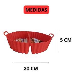 Forma de silicone com divisórias e alças para Air Fryer. Antiaderente, flexível e resistente ao calor. Permite assar 2 tipos de alimentos diferentes simultaneamente. Livre de BPA.Tipo
