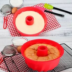 Esta forma de silicone redonda é perfeita para quem deseja preparar deliciosos pudins e bolos de forma prática e eficiente.