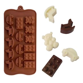 Descrição: Leve um toque lúdico às suas criações com essa forma de silicone inspirada em brinquedos infantis Com moldes de cavalinhos de balanço, ursinhos fofos, Carrinhos e blocos de montar, essa forminha é perfeita para fazer chocolates, balas, gelatinas, sabões artesanais ou cubos de gelo super criativos. Feita em silicone flexível e resistente, ela facilita o desenforme e a limpeza, sendo ideal para festas temáticas, lembrancinhas ou momentos de diversão na cozinha com as crianças.