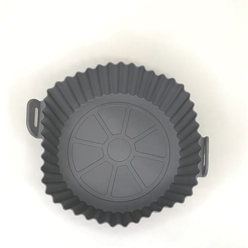 Forma redonda de silicone antiaderente para Air Fryer, com 16cm de diâmetro, ideal para assar diversos alimentos sem grudar. Reutilizável, resistente a altas temperaturas e fácil de limpar.Tipo